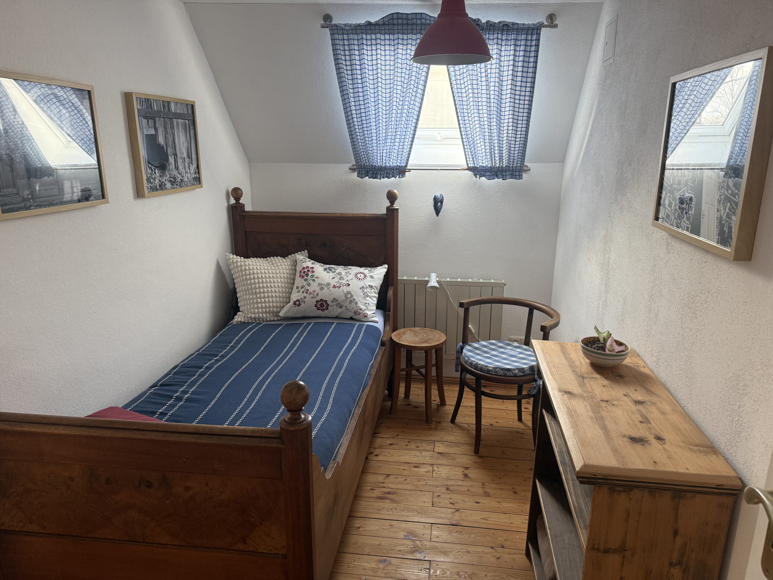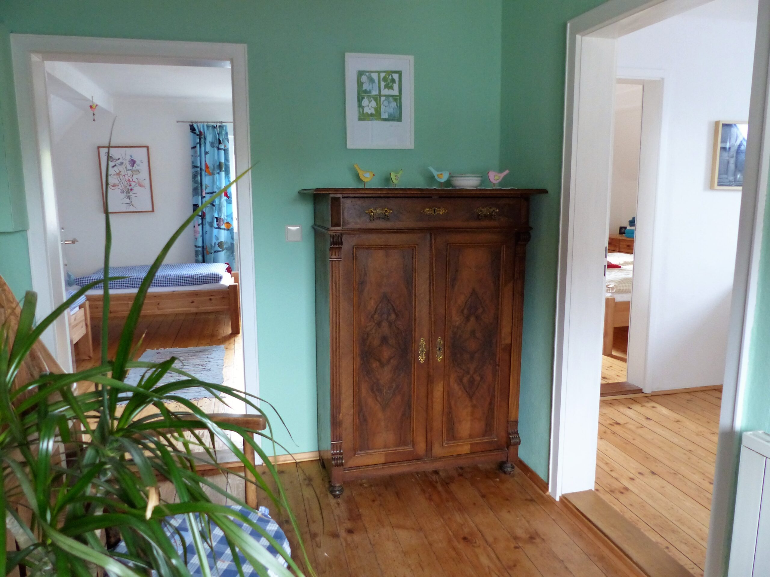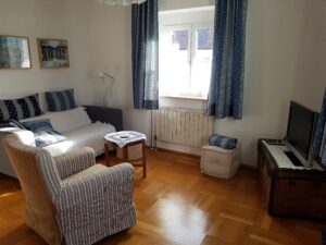 Es verfügt über 2 Schlafzimmer, eine Wohnküche, ein Wohnzimmer, Bad und WC sowie über ein kleines Lese- und Arbeitszimmer. Für unsere kleinen Gäste ist ein Babybett vorhanden.